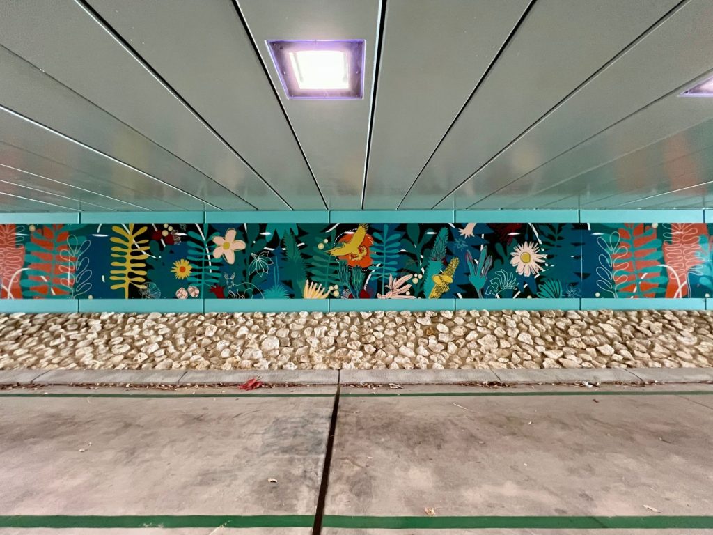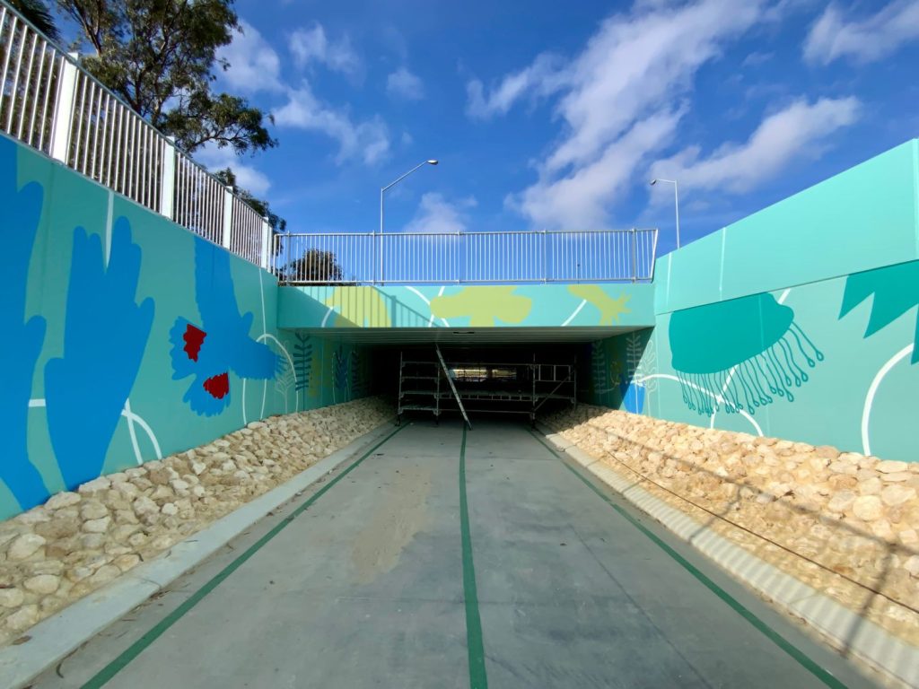 From a distance, the external walls offer a restrained palette and simplified design elements to suit the movement of passing cyclists and commuters. As viewers move closer or enter the tunnel, the artwork gradually reveals a rich ‘natural wonderland’ – inviting curiosity and a closer look at the intricate flora and fauna layered within. This work reflects the belief that artistic excellence lies not only in technique, but in creating place-responsive works that provoke thought, celebrate connection, and enrich everyday experience. Kwobidok Wilderness invites you to enjoy your journey through a vibrant, living tapestry – set on Whadjuk Nyoongar Boodjar.