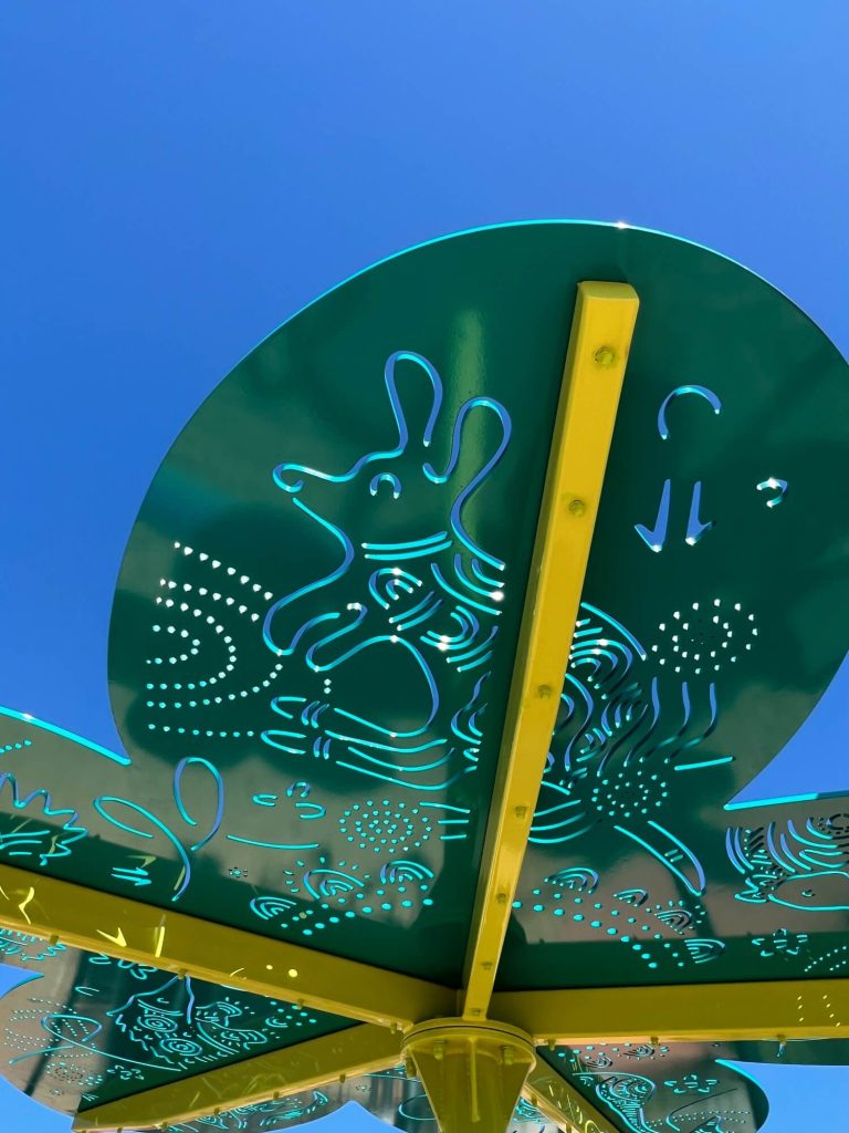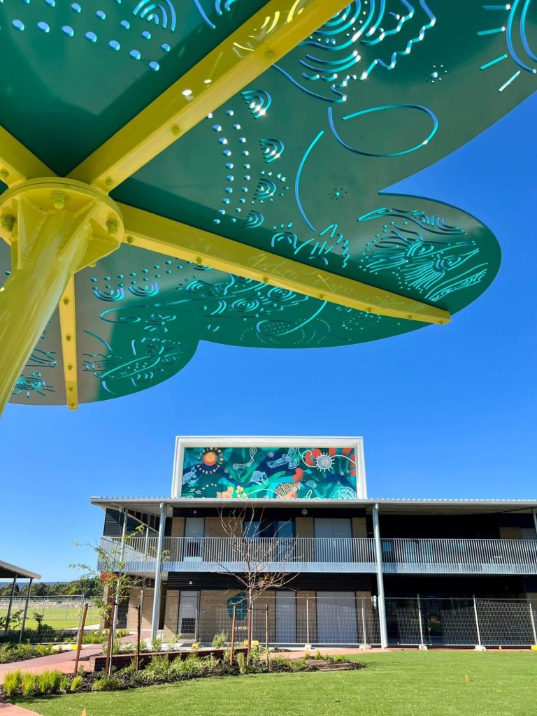 Working alongside Aboriginal artist Seantelle Walsh, I co-created a vibrant suite of artworks that transform the school grounds into a living bush wonderland – a place of learning, movement and connection to Country.