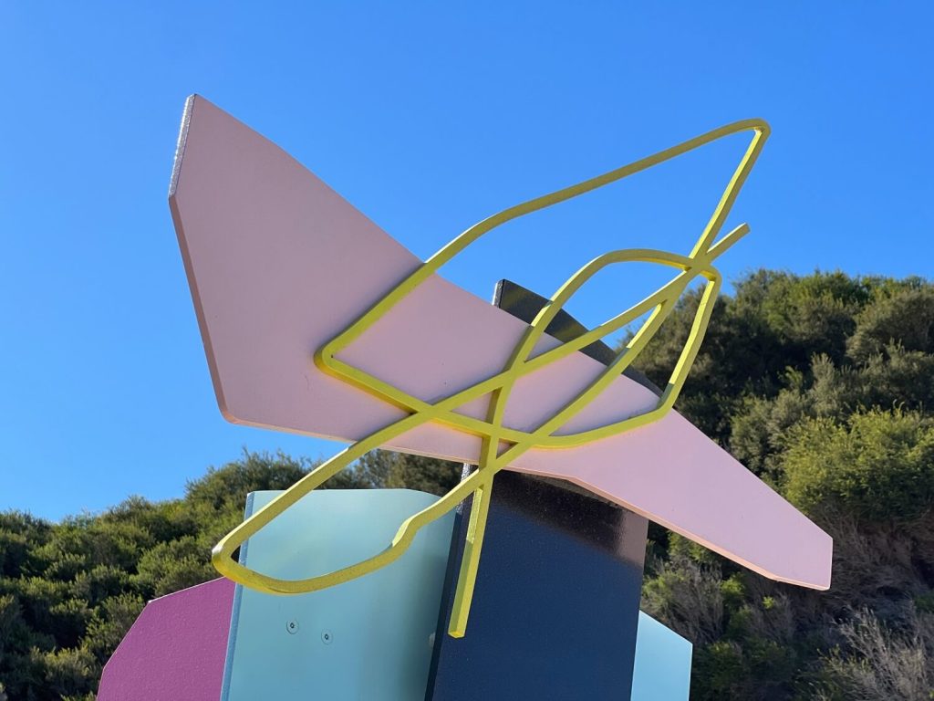 Temporal Constructs explores the shifting nature of perception over time, using abstracted, layered forms to suggest both the permanence of structure and the transience of moments. Its geometry plays with light and shadow, changing character as the day progresses. At a distance, the form reads as a strong silhouette against the sky and ocean; up close, textured surfaces invite slower viewing and tactile curiosity.